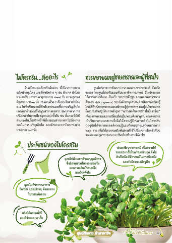 ต ้นปร ะมาณ ๒-๔ นว ปร ะกอบดว ย ล ำาต ้นแล ะใบจร ิงส่เข่ย ว ต ้นอ่อน (Microgreens) ร ว มถ ่งจัดท าจดสาธ ิต เพื�อเปนแหล ่งเร ่ย นร ู้