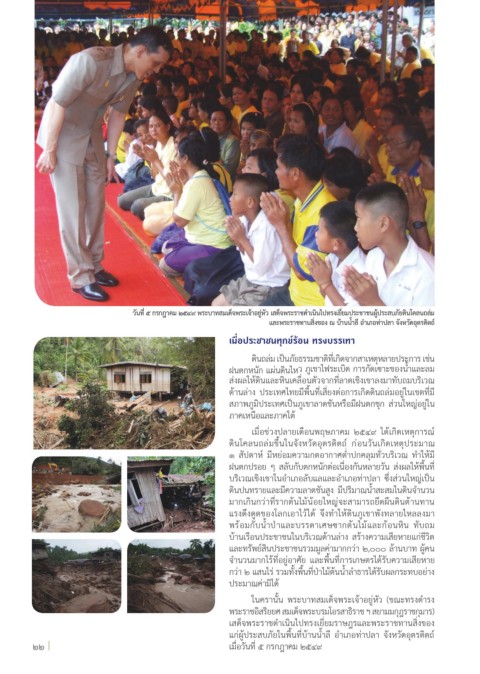 วันที่ ๕ กรกฎาคม ๒๕๔๙ พระบาทสมเด็จพระเจาอยูหัว เสด็จพระราชด�าเนินไปทรงเยี่ยมประชาชนผูประสบภัยดินโคลนถลม