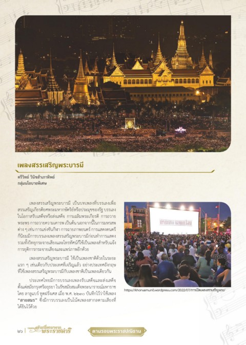 ตั้งแตสมัยกรุงศรีอยุธยา ในรัชสมัยสมเด็จพระนารายณมหาราช https://khonsamun0.wordpress.com/2022/07/การเปดเพลงสรรเสริญพระ/