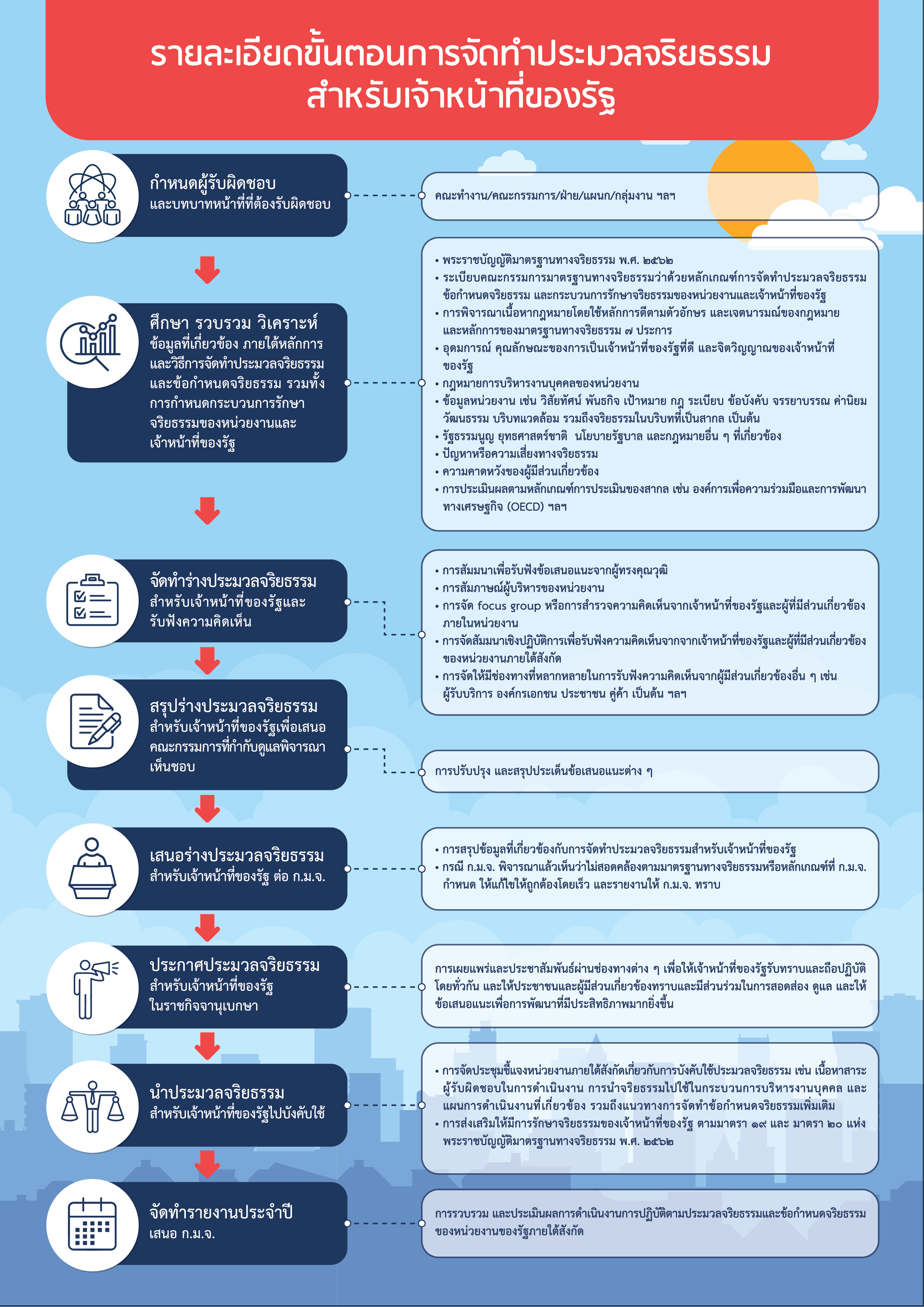 รายละเอียดขั้นตอนการจัดทำประมวลจริยธรรมของเจ้าหน้าที่ของรัฐ