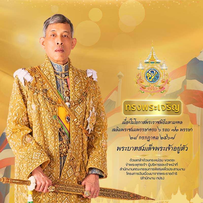 เนื่องในโอกาสพระราชพิธีมหามงคลเฉลิมพระชนมพรรษาครบ ๖ รอบ ๗๒ พรรษา ๒๘ กรกฎาคม ๒๕๖๗ พระบาทสมเด็จพระปรเมนทรรามาธิบดีศรีสินทรมหาวชิราลงกรณ พระวชิรเกล้าเจ้าอยู่หัว