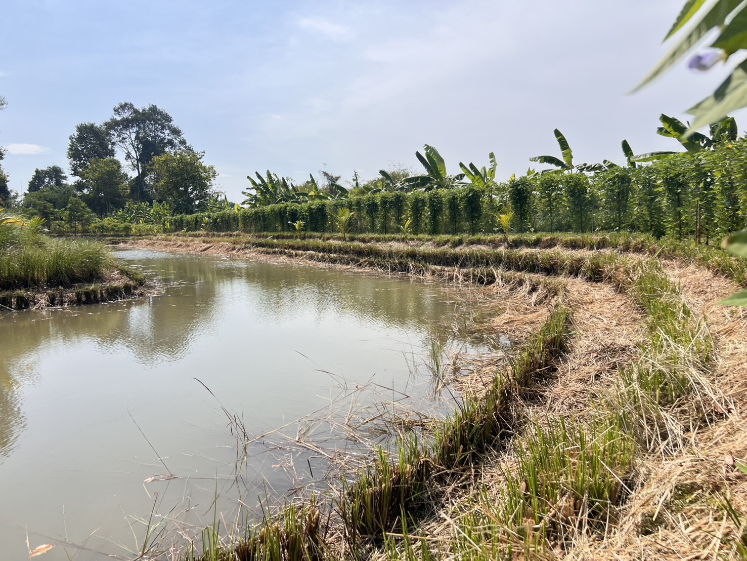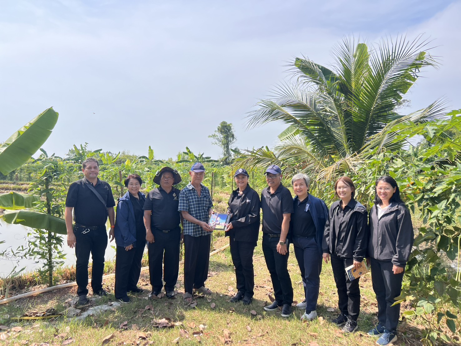วันอังคารที่ 25 พฤศจิกายน 2568 นางศศิพร ปาณิกบุตร รองเลขาธิการ กปร. และเจ้าหน้าที่สำนักงาน กปร. ลงพื้นที่ร่วมกับ นายอนุรักษ์ บัวคลี่คลาย ผู้อำนวยการศูนย์ศึกษาการพัฒนาเขาหินซ้อนอันเนื่องมาจากพระราชดำริ และเจ้าหน้าที่ศูนย์ฯ ณ ศูนย์บริการถ่ายทอดเทคโนโลยีการเกษตรตำบลย่านรีและเครือข่ายคนรักษ์แฝก แปลงเกตรกรของ ร.ต.สุรชัย บุญคง ที่ปรึกษาเครือข่ายคนรักษ์แฝก เดิมประกอบอาชีพข้าราชการทหาร ผันตัวมาทำเกษตรผสมผสาน เลี้ยงหมูหลุม เพื่อนำมูลมาฟื้นฟูดิน ต่อมาเจอปัญหาดินลูกรังทำให้น้ำในสระมีสีแดงขุ่นไม่สามารถนำมาใช้ประโยชน์ได้ จึงปลูกหญ้าแฝกบริเวณขอบสระ ใช้เวลาแค่ 6 เดือน ก็ทำให้น้ำใสตามที่ต้องการ อีกทั้งการปลูกหญ้าแฝกยังช่วยลดการพังทลายของดินลูกรังได้อีกด้วย