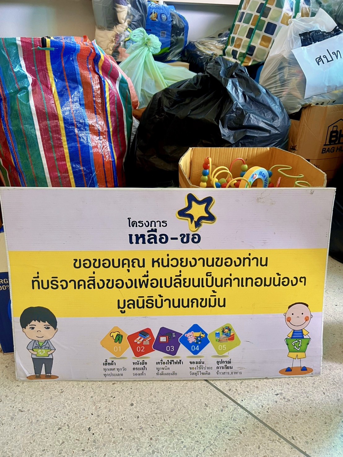สำนักงาน กปร. และชมรม กปร. พอเพียง จิตอาสา ต้านทุจริต บริจาคสิ่งของที่ไม่ใช้แล้วให้แก่มูลนิธิบ้านนกขมิ้น (โครงการ เหลือ – ขอ)