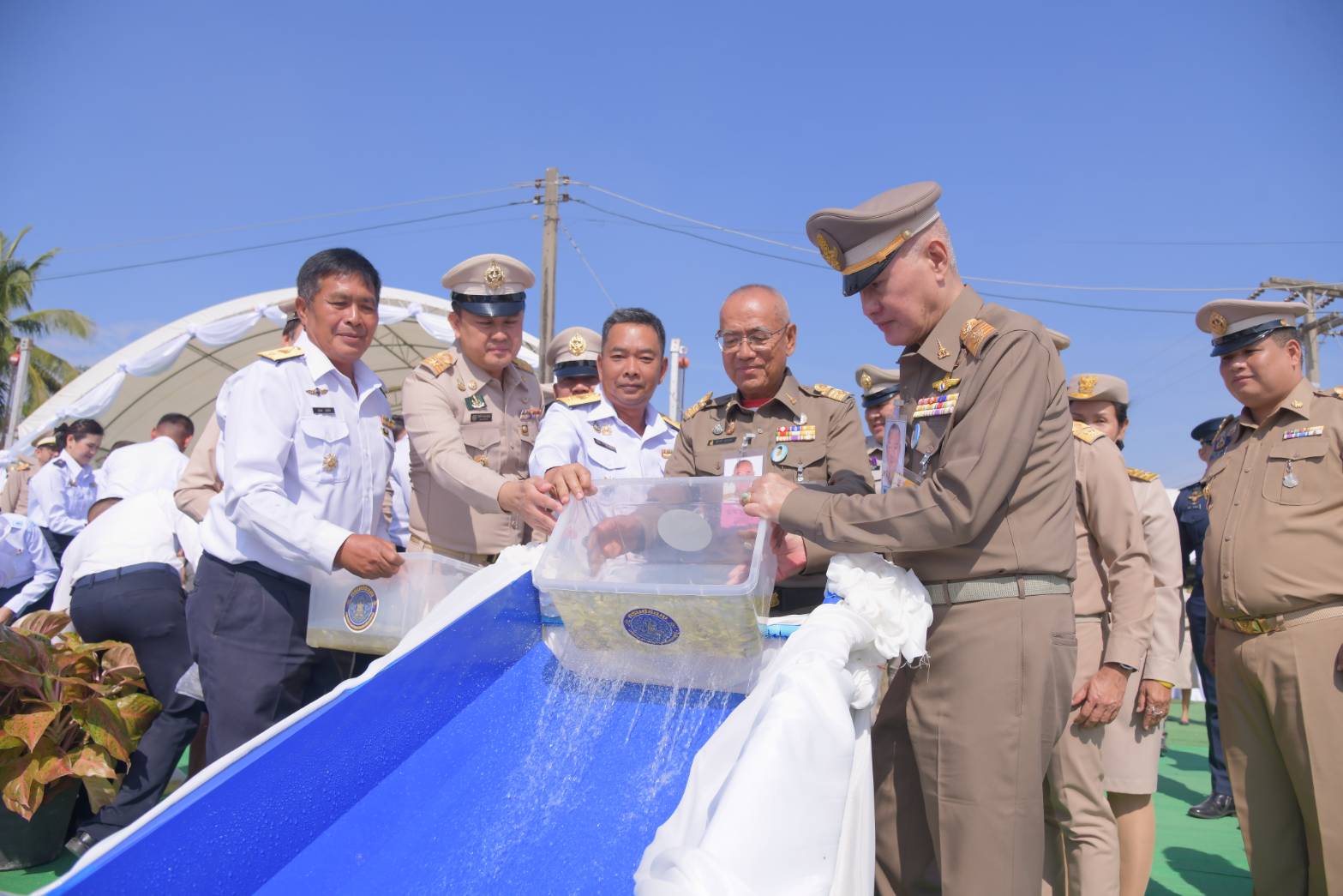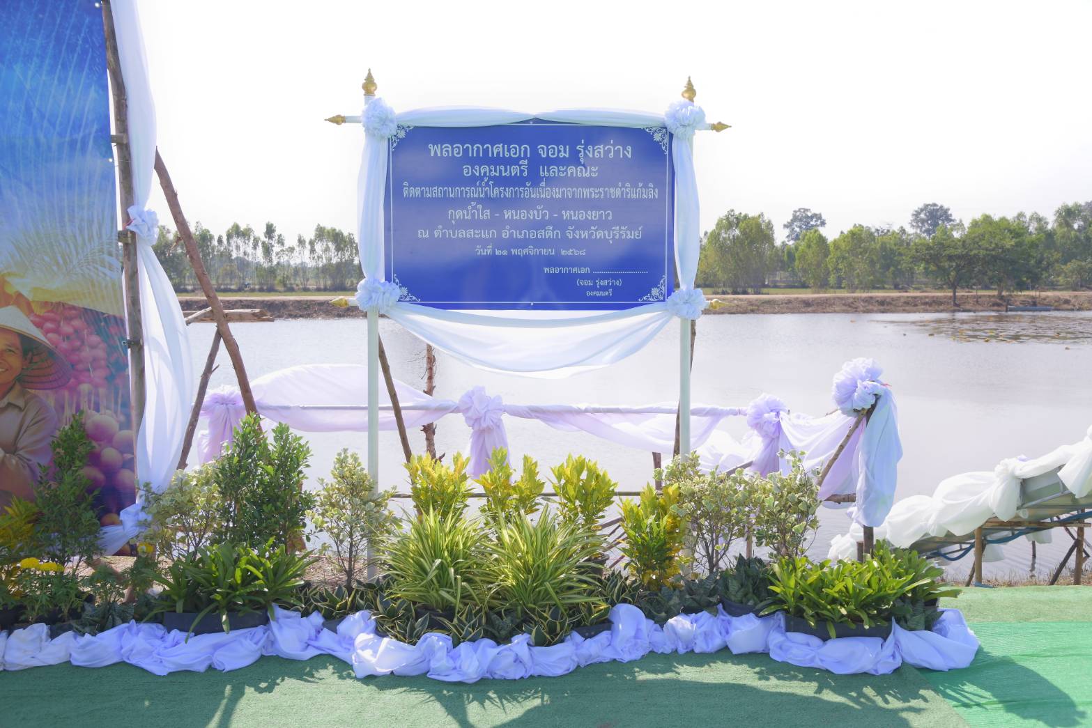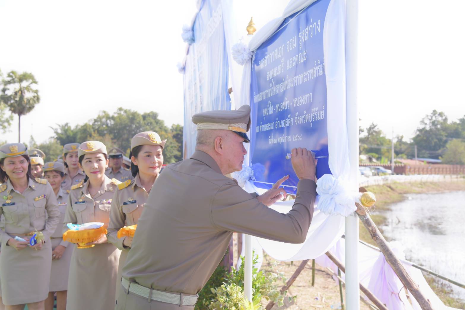 วันศุกร์ที่ 21 พฤศจิกายน 2568 เวลา 09.30 น. พลอากาศเอก จอม รุ่งสว่าง องคมนตรี รองประธานกรรมการติดตามและขับเคลื่อนโครงการอันเนื่องมาจากพระราชดำริ พร้อมด้วย นายศุภรัชต์ อินทราวุธ รองเลขาธิการ กปร. และคณะอนุกรรมการติดตามและขับเคลื่อนโครงการอันเนื่องมาจากพระราชดำริในพื้นที่ภาคตะวันออกเฉียงเหนือ เดินทางไปยังโครงการปรับปรุงและขุดลอกหน้าฝายบ้านหนองเรือ และโครงการก่อสร้างสถานีสูบน้ำด้วยไฟฟ้าพร้อมระบบส่งน้ำบ้านหนองเรือ ตำบลกู่สวนแตง อำเภอบ้านใหม่ไชยพจน์ จังหวัดบุรีรัมย์ โดยมีผู้แทนกรมชลประทานบรรยายสรุปผลการดำเนินงานโครงการ ผู้แทนศูนย์วิจัยและพัฒนาการเกษตรบุรีรัมย์ และผู้แทนสำนักงานเกษตรจังหวัดบุรีรัมย์ บรรยายสรุปผลสัมฤทธิ์รวมทั้งการขยายผลโครงการ โอกาสนี้ องคมนตรีได้ให้ข้อเสนอแนะเพื่อประโยชน์สูงสุดแก่ประชาชนในพื้นที่ จากนั้น ตรวจเยี่ยมโครงการ พร้อมพบปะราษฎรผู้ได้รับประโยชน์ เยี่ยมชมผลิตภัณฑ์และผลผลิตการเกษตรของราษฎร