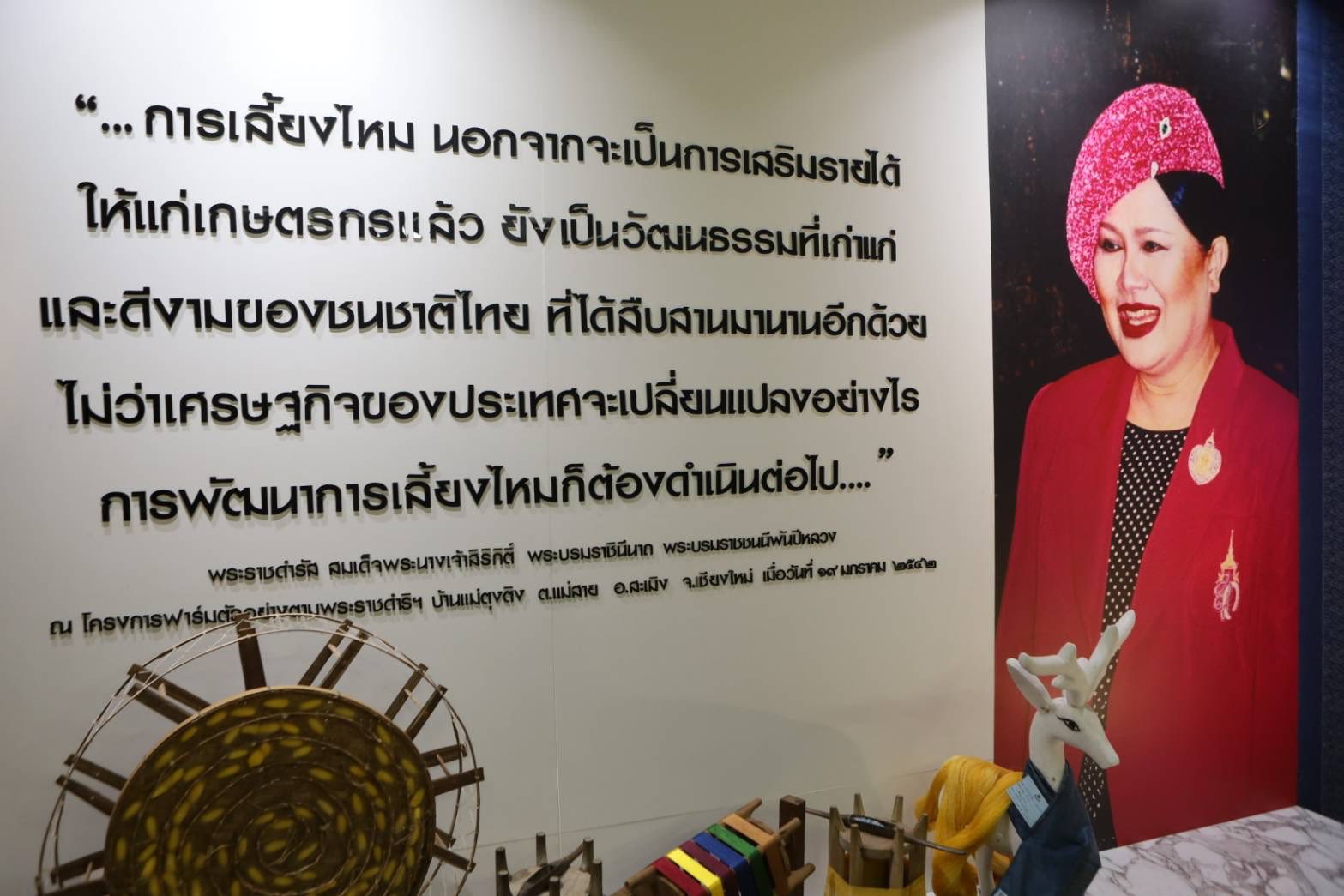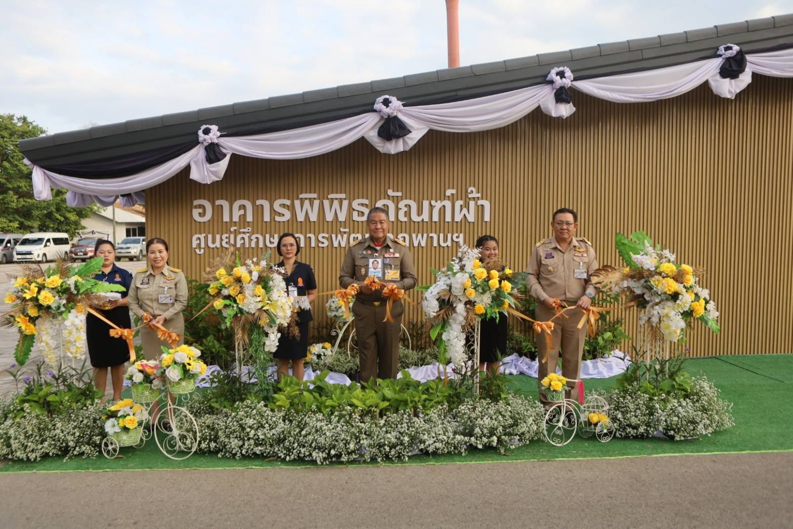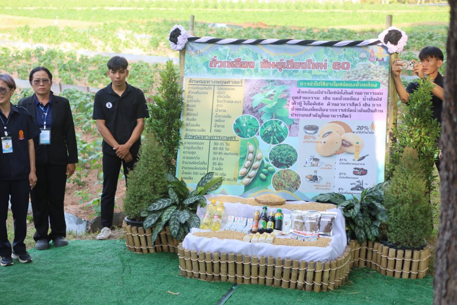 ช่วงบ่าย องคมนตรีและคณะ ได้เยี่ยมชมนิทรรศการและรับฟังการบรรยายสรุปผลการดำเนินงานของหน่วยงานร่วม จากนั้น นั่งรถรางไปยังกิจกรรมพืชไร่ เพื่อเยี่ยมชมแปลงปลูกถั่วเหลือง โอกาสนี้ เลขาธิการ กปร. กล่าวรายงานการจัดเตรียมพื้นที่ปลูกถั่วเหลือง ต่อจากนั้น องคมนตรีเดินทางไปยังงานศึกษาและพัฒนาปศุสัตว์ติดตามการดำเนินงานความก้าวหน้าการขึ้นทะเบียนพันธุ์แท้โคเนื้อภูพาน จากนั้น องคมนตรี นั่งรถรางไปยังอาคารพิพิธภัณฑ์ผ้า เพื่อเปิดอาคารพิพิธภัณฑ์ผ้าศูนย์ศึกษาการพัฒนาภูพานฯ และเยี่ยมชมภายในพิพิธภัณฑ์ผ้า ประกอบด้วย วงจรชีวิตหนอนไหม การสาวไหมแบบพื้นบ้าน การย้อมสีเส้นไหมด้วยเทคนิคการย้อมทับ และการจำหน่ายผ้าไหมและผลิตภัณฑ์จากผ้าไหมของกลุ่มเกษตรกร
