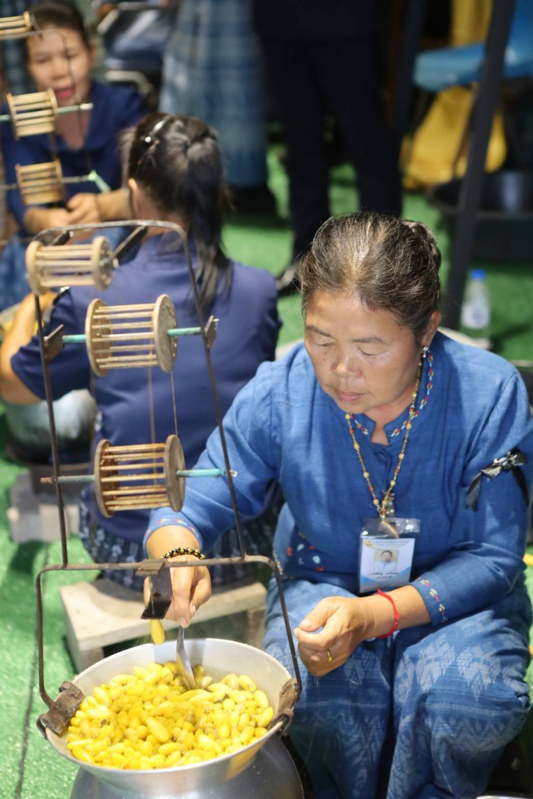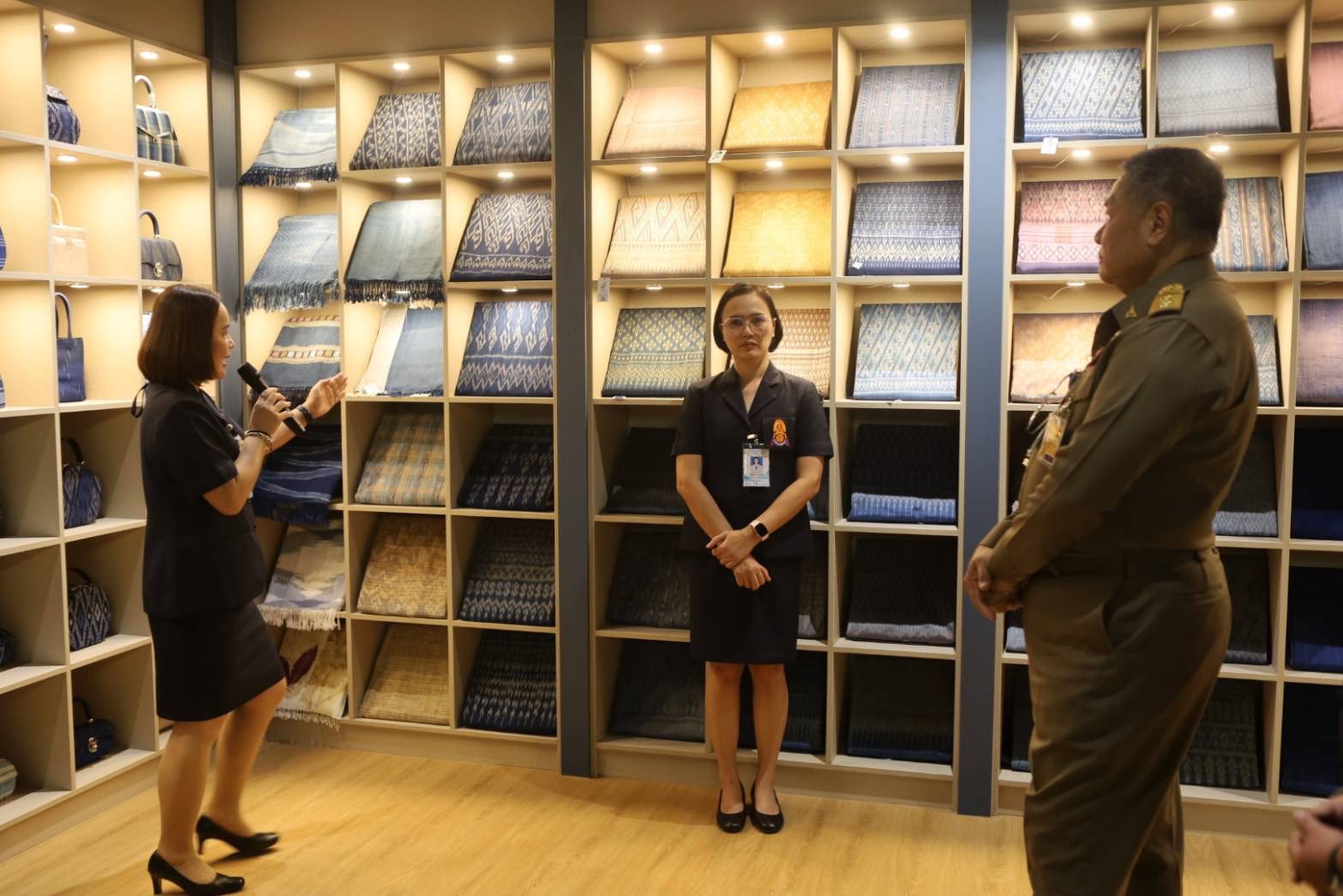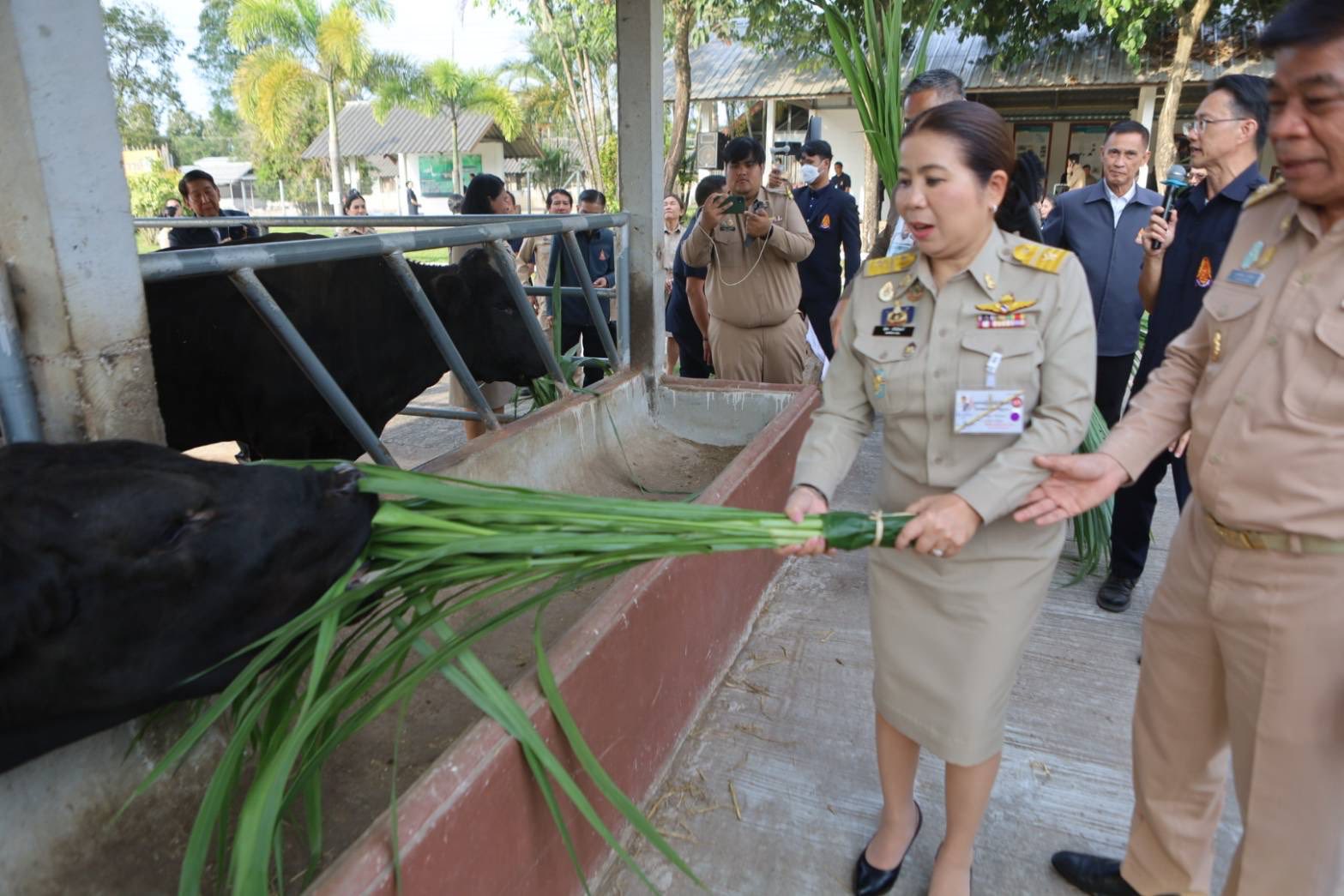 ช่วงบ่าย องคมนตรีและคณะ ได้เยี่ยมชมนิทรรศการและรับฟังการบรรยายสรุปผลการดำเนินงานของหน่วยงานร่วม จากนั้น นั่งรถรางไปยังกิจกรรมพืชไร่ เพื่อเยี่ยมชมแปลงปลูกถั่วเหลือง โอกาสนี้ เลขาธิการ กปร. กล่าวรายงานการจัดเตรียมพื้นที่ปลูกถั่วเหลือง ต่อจากนั้น องคมนตรีเดินทางไปยังงานศึกษาและพัฒนาปศุสัตว์ติดตามการดำเนินงานความก้าวหน้าการขึ้นทะเบียนพันธุ์แท้โคเนื้อภูพาน จากนั้น องคมนตรี นั่งรถรางไปยังอาคารพิพิธภัณฑ์ผ้า เพื่อเปิดอาคารพิพิธภัณฑ์ผ้าศูนย์ศึกษาการพัฒนาภูพานฯ และเยี่ยมชมภายในพิพิธภัณฑ์ผ้า ประกอบด้วย วงจรชีวิตหนอนไหม การสาวไหมแบบพื้นบ้าน การย้อมสีเส้นไหมด้วยเทคนิคการย้อมทับ และการจำหน่ายผ้าไหมและผลิตภัณฑ์จากผ้าไหมของกลุ่มเกษตรกร