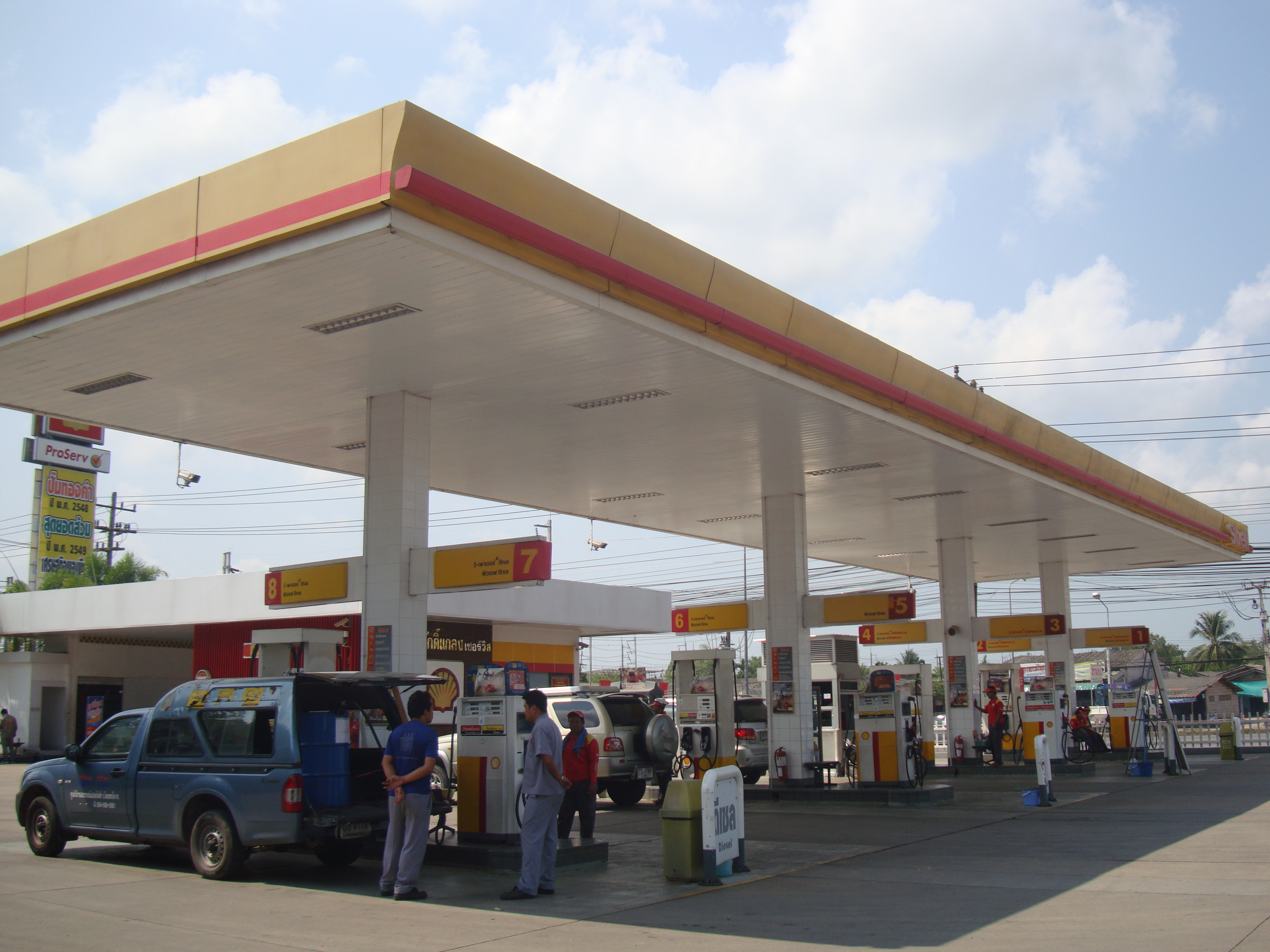 หจก. สมศักดิ์แกลง เซอร์วิส ดำเนินกิจการขายน้ำมันเพียงอย่างเดียวมาจนถึงช่วงวิกฤติเศรษฐกิจ ปี 2540 - 2544 ซึ่งประสบปัญหาเศรษฐกิจจากคู่แข่งทางการค้าที่เพิ่มมากขึ้น ผู้บริหารจึงฉุกคิดว่า คงไม่สามารถขายแต่น้ำมันเพียงอย่างเดียวได้แล้วเพราะมีความเสี่ยงสูง เปรียบเสมือนการปลูกพืชเชิงเดี่ยว จึงจำเป็นต้องพัฒนาสถานีบริการให้มีธุรกิจพร้อมบริการทั้งรถและคนโดยสารเปรียบเสมือนการปลูกพืชหลายอย่าง เพื่อลดความเสี่ยงตามแนวเกษตรทฤษฎีใหม่ ดังนั้นจึงปรับเปลี่ยนกลยุทธ์การดำเนินธุรกิจอย่างค่อยเป็นค่อยไปตามความต้องการของลูกค้า และศึกษาข้อมูลในการขยายธุรกิจมาโดยตลอด โดยเริ่มจากการเปิดร้านกาแฟสด ปรับปรุงห้องน้ำใหม่ เปิดร้านขายข้าวแกงและร้านขายสินค้าโอทอป เพื่อให้เกิดการบริการที่ครบวงจร อีกทั้งยังคำนึงถึงการรักษาสิ่งแวดล้อมด้วยการบำบัดน้ำเสียจากการบริการต่างๆ ภายในสถานีบริการน้ำมัน จนเป็นแหล่งศึกษาเรียนรู้ด้านการอนุรักษ์และบำบัดน้ำเสียให้แก่ผู้ที่สนใจทั้งจากภายในและภายนอกชุมชนได้อย่างต่อเนื่อง